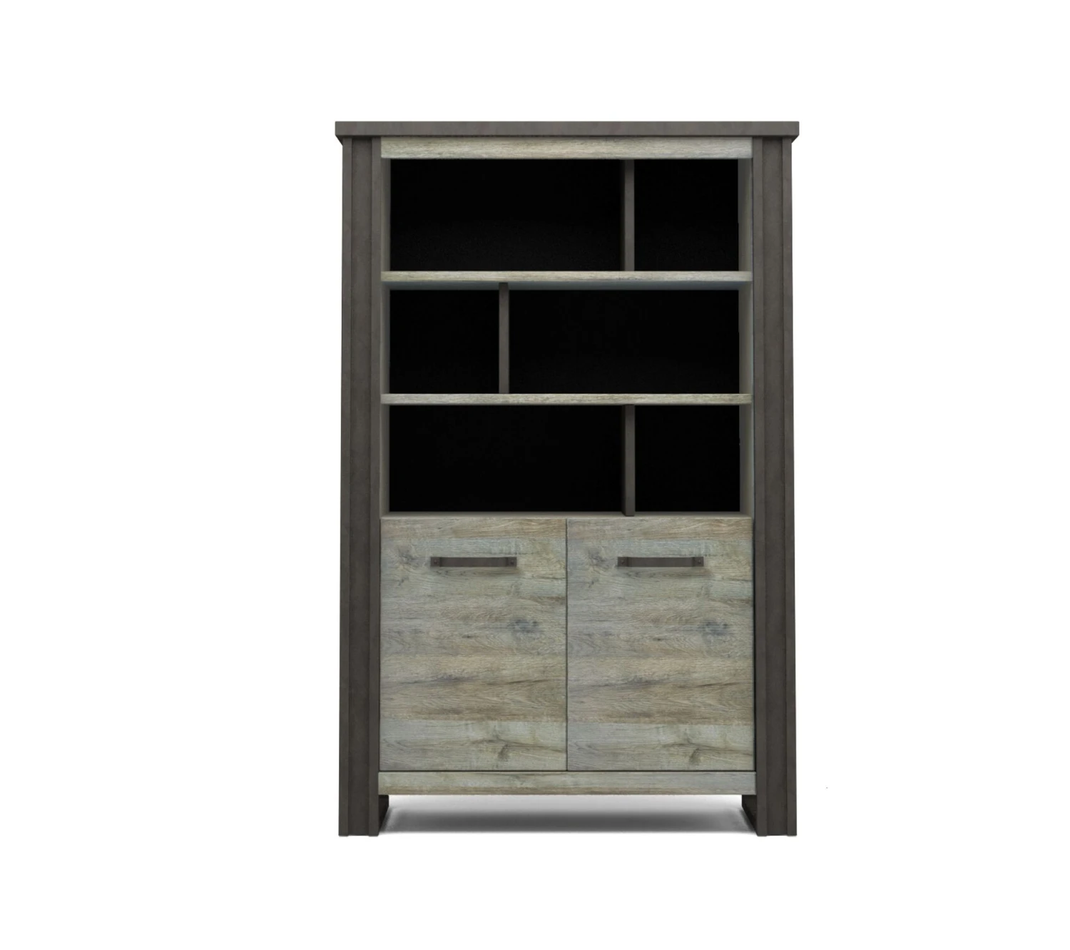 Idéale pour compléter un intérieur urbain ou industriel, cette bibliothèque imitation chêne gris a de quoi plaire avec ses larges rebords foncés qui se prolongent jusqu’au sol. Vous pourrez l’associer à un canapé en cuir marron ou à une table de salle à manger en bois massif.
