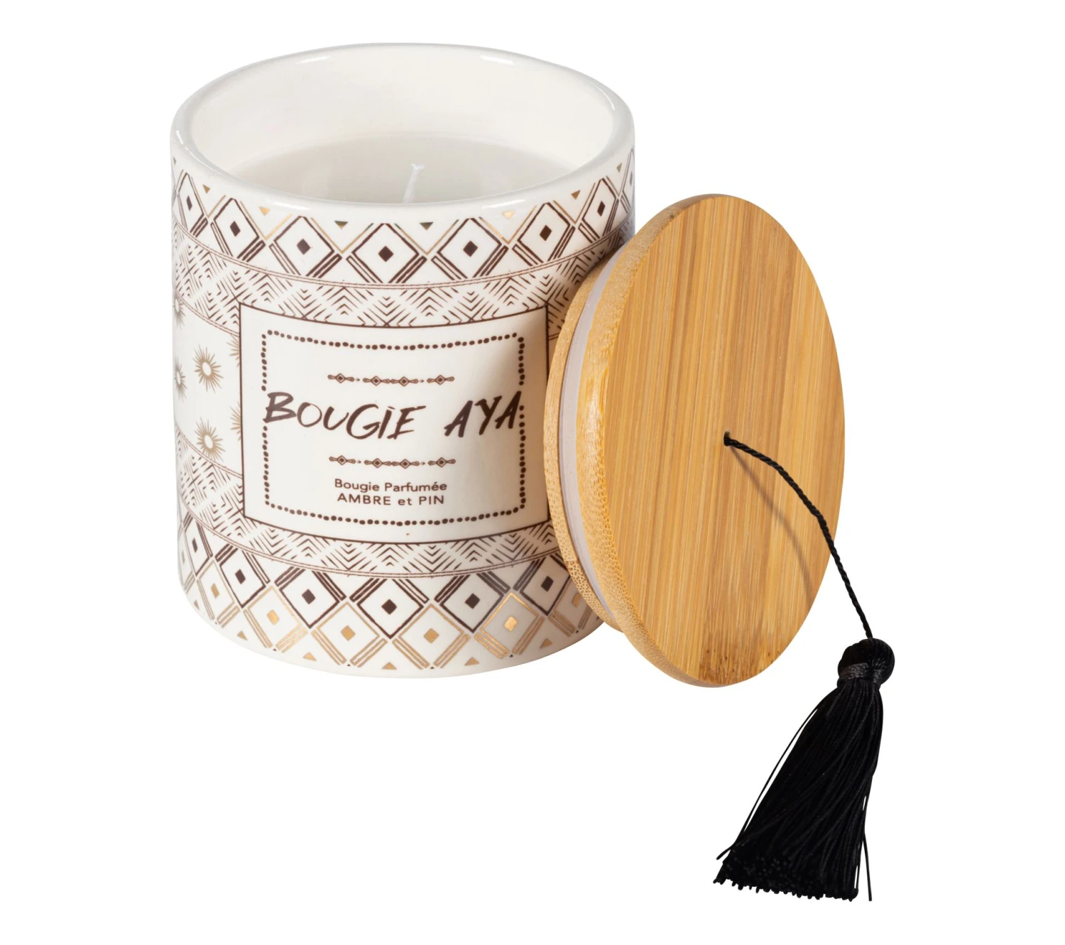 Vous souhaitez acheter une jolie bougiepour vous faire plaisir ou en guise de cadeau ? Craquez pour ce modèle qui présente un très bon rapport qualité / prix. Il est constitué d’un contenant en dolomite de forme ronde et d’un couvercle en bois clair, agrémenté d’un pompon noir. L’intérieur est rempli de 310 g de cire paraffine de couleur blanche avec une mèche. En allumant la bougie AYA, vous apprécierez son parfum doux et délicat d’ambre et de pin. Fonctionnelle et décorative, elle se nettoie facilement. Il suffit d’en retirer la poussière à l’aide d’un chiffon microfibre.