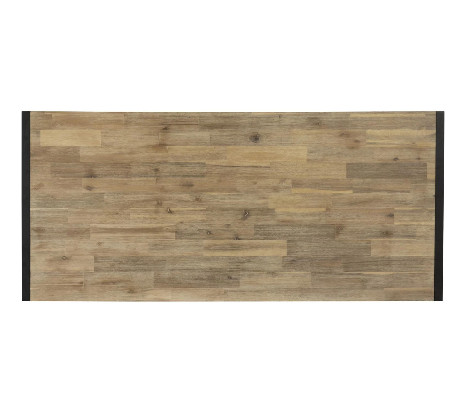 On aime beaucoup la patine de ce buffet en bois naturel, qui arbore un coloris chaud et élégant. Pour ajouter de la profondeur, les bordures et les poignées sont en métal peint en noir, un matériau qui rappelle le design industriel. Ce buffet s’assortit facilement à la grande table à manger de la même collection.