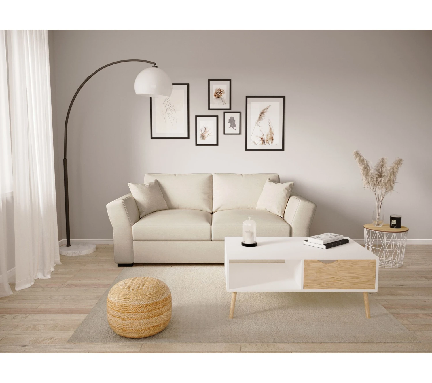 Réalisée en pin, panneaux de particules et en panneaux de fibres de moyenne densité, la structure de ce canapé se montre d’une grande solidité. C’est également le cas du tissu épais qui le recouvre. Résistant aux utilisations répétées, ce canapé vous accompagnera durant des années.