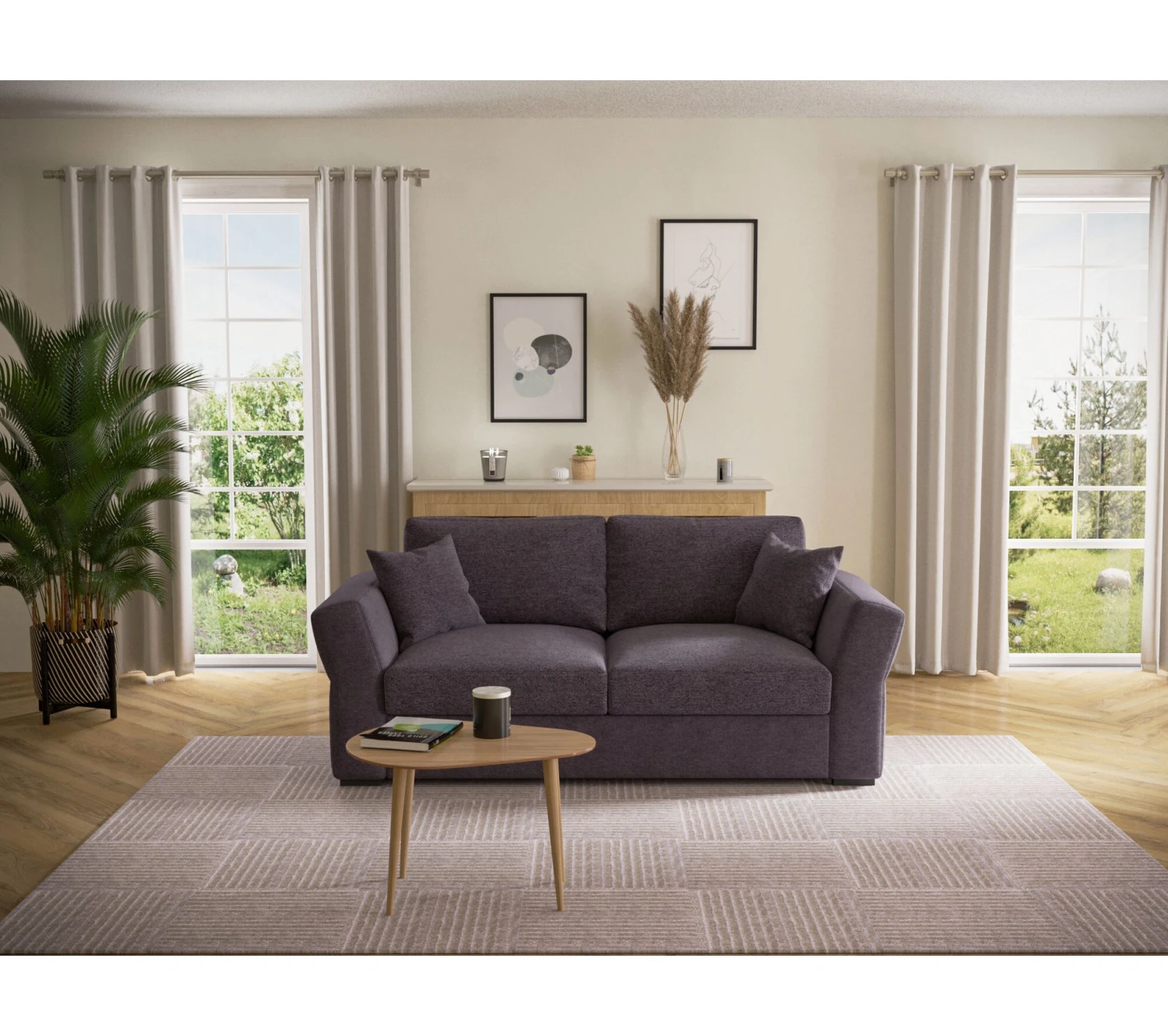 Comme ce canapé droit ne réclame pas de montage, vous pouvez l’installer dans la pièce de votre choix dès sa livraison. En cas de tache, vous pouvez tamponner le textile de ce canapé en tissu d’un peu d’eau additionnée de détergent, en suivant les indications laissées par le fabricant.