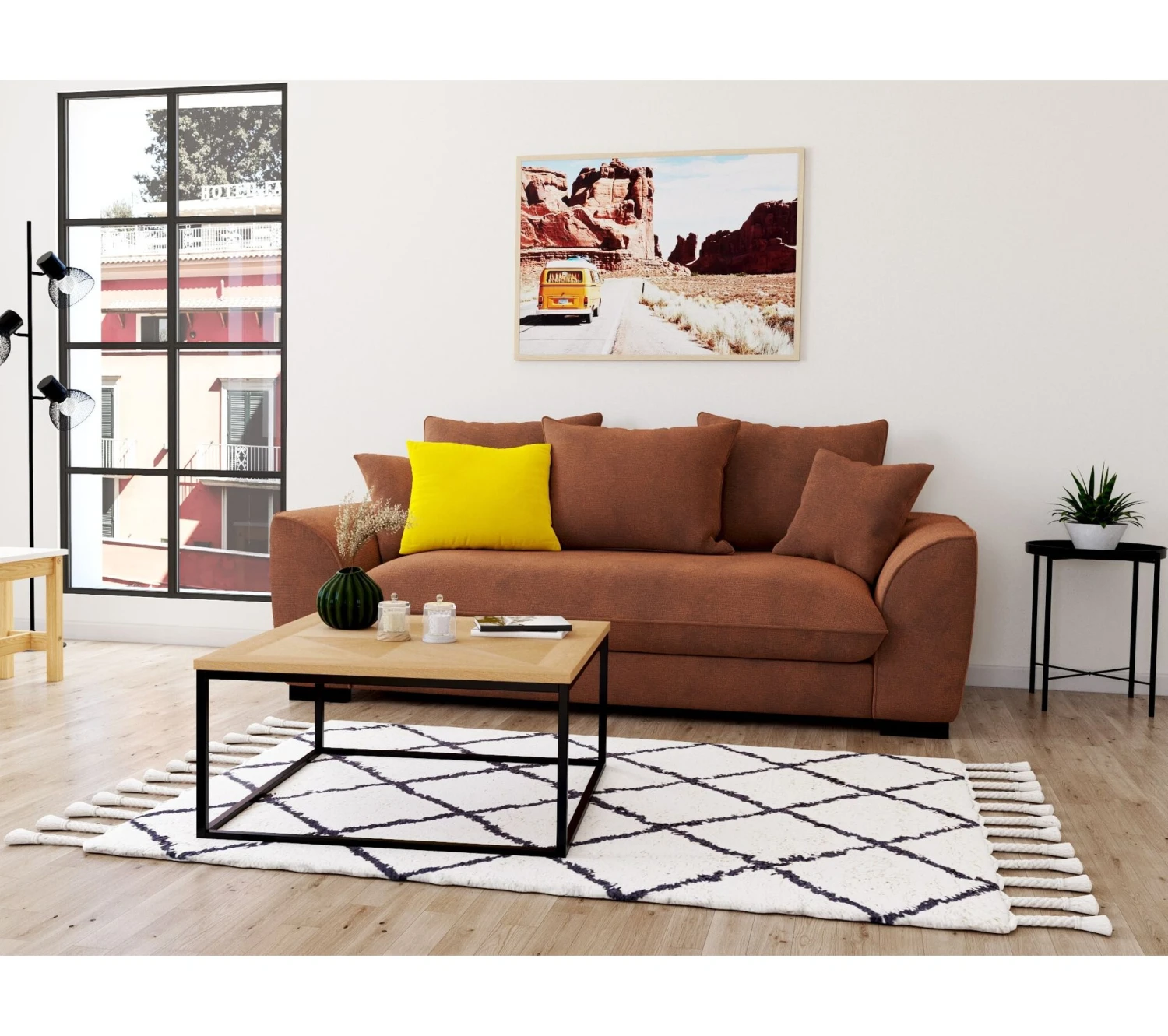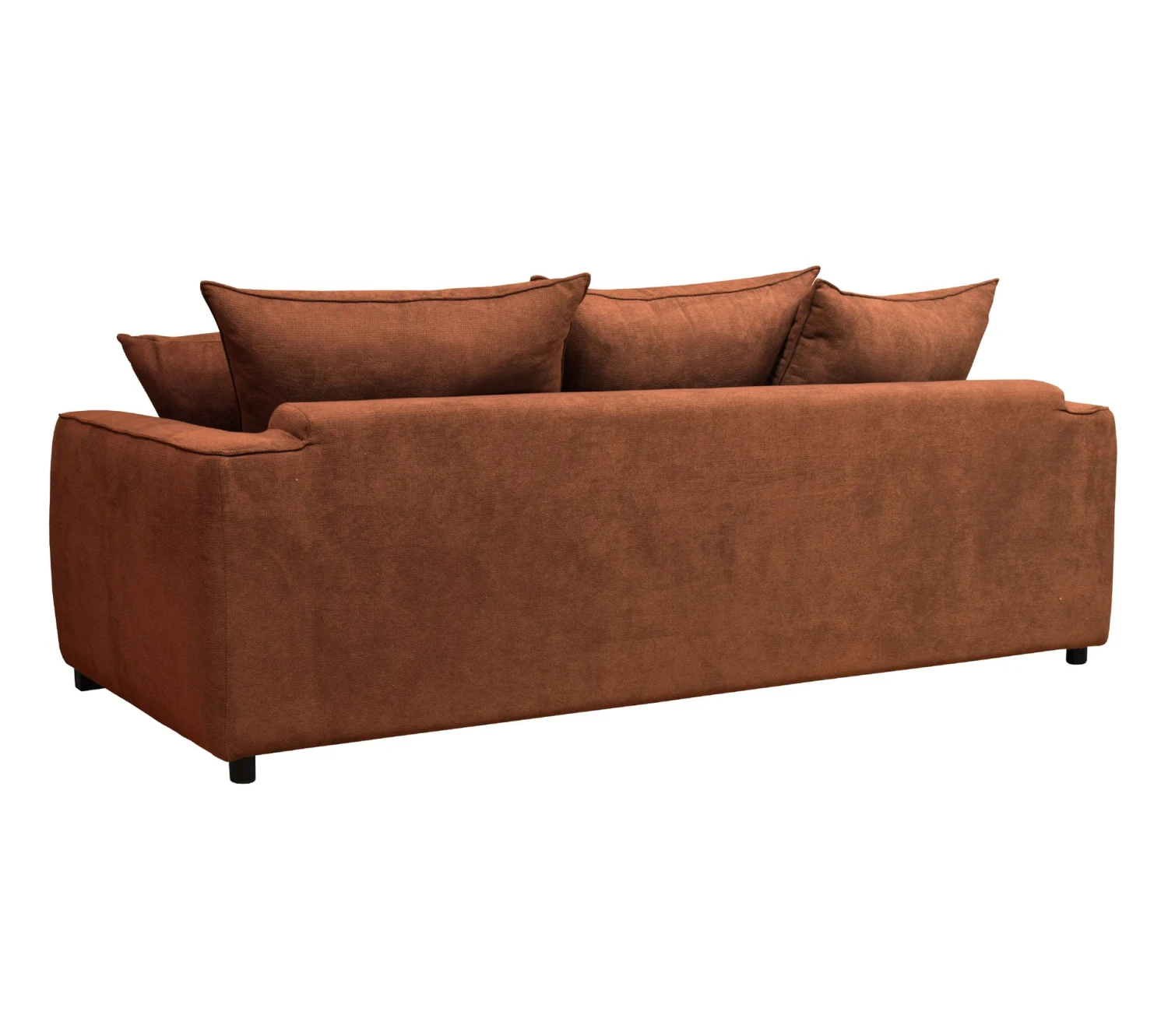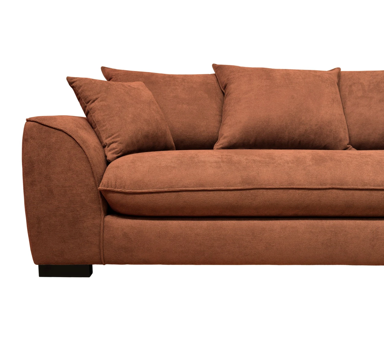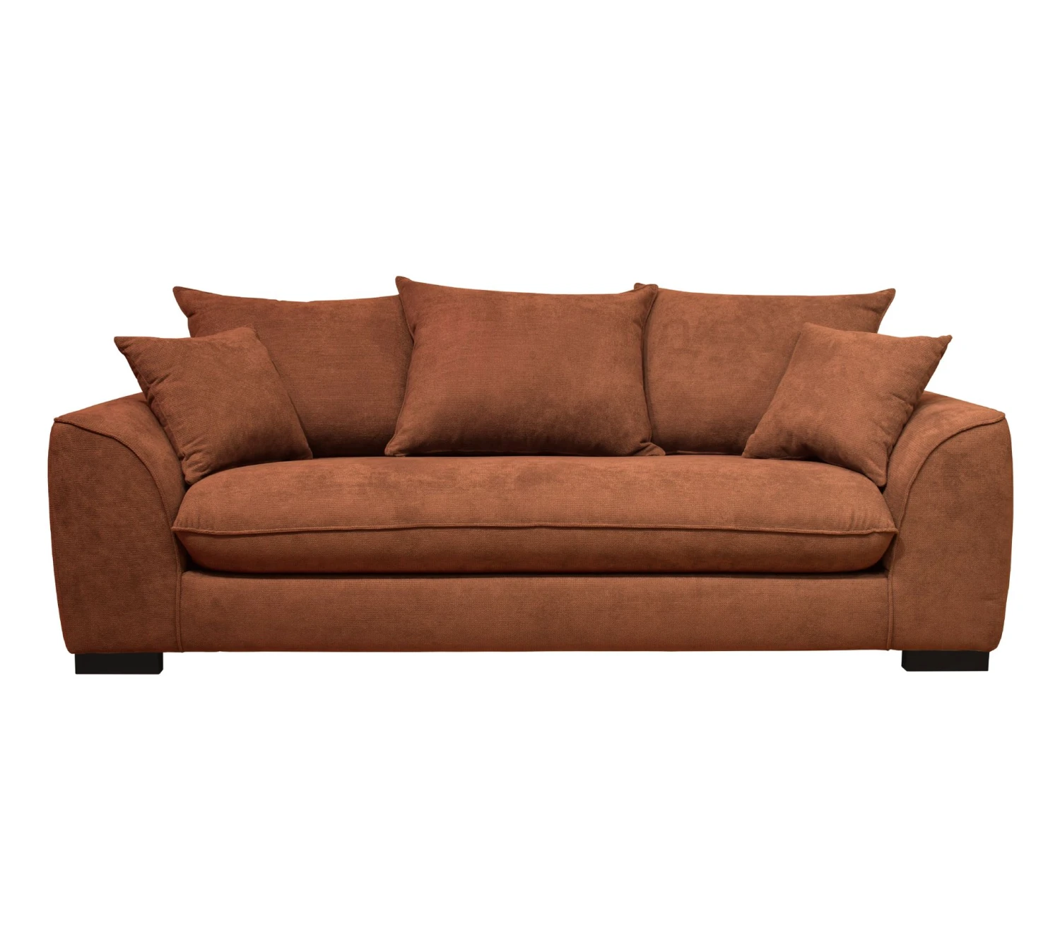 Le canapé SAGA est un modèle simple et élégant qui s’associera facilement à la décoration de votre salon. Il se distingue par ses accoudoirs légèrement arrondis originaux et son dossier composé de cinq coussins. Avec son coloris chaleureux, ce canapé terracotta apportera un côté cosy à votre intérieur.