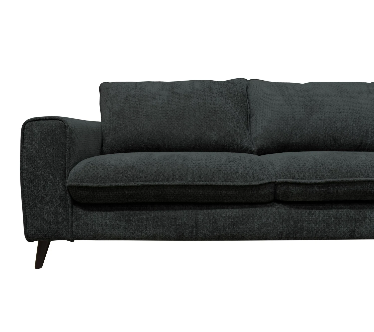Ce canapé modernepeut accueillir 3 personnes. L’assise, garnie de mousse polyéther d’une densité 28kg/m3, procure une sensation de confort ferme et agréable. Quant au dossier du canapé, il se compose de coussins de dos en flocons de fibres creuses siliconées 100 % polyester. Le haut du corps est bien maintenu.