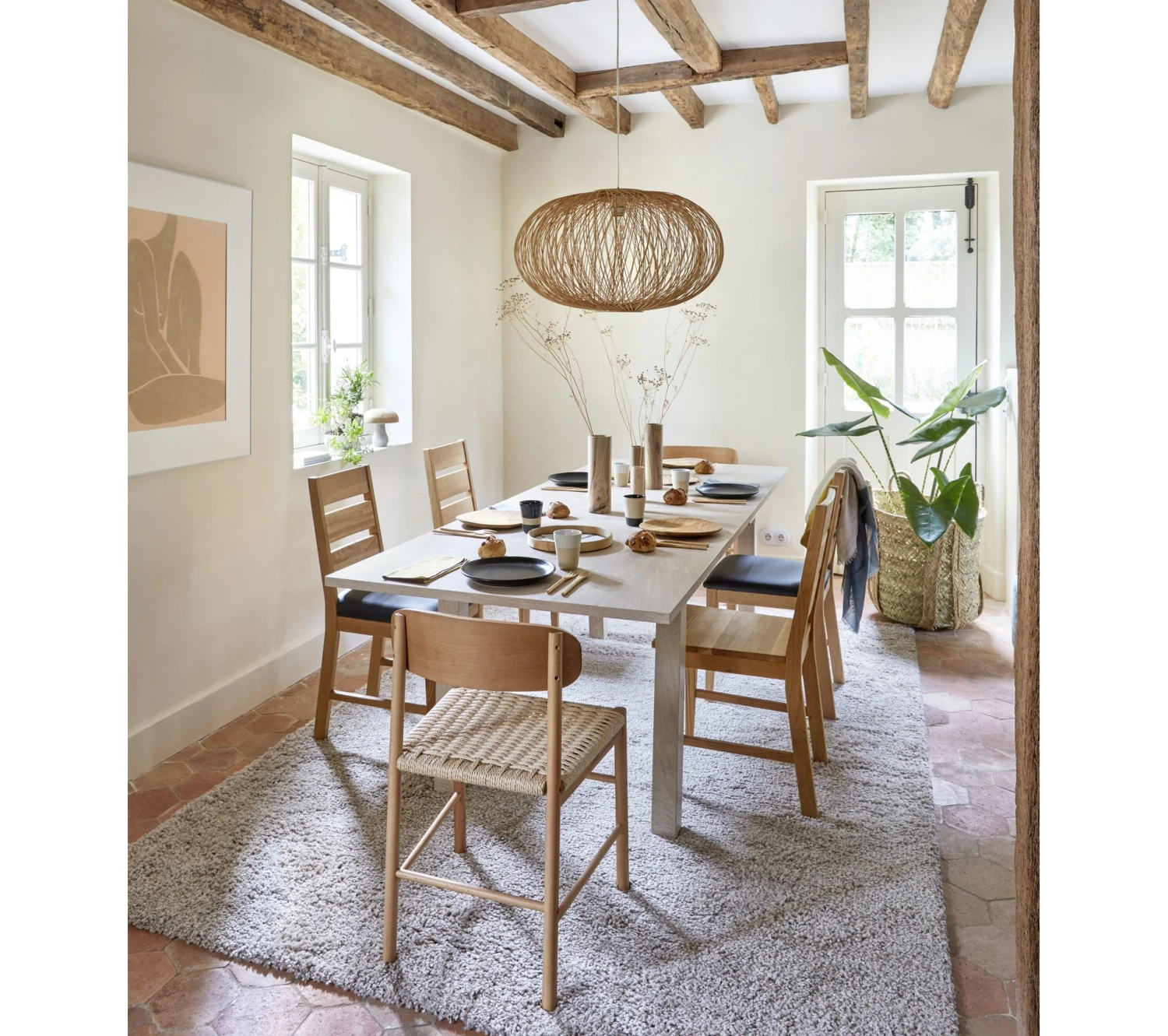 Confortable, cette chaise au coloris naturel permet de s’adosser et de s’installer dans une position optimale. La hauteur d’assise de 45,5 cm convient aux dimensions des tables standards. Le siège en bois peut être agrémenté d’un petit coussin pour un accueil plus souple.