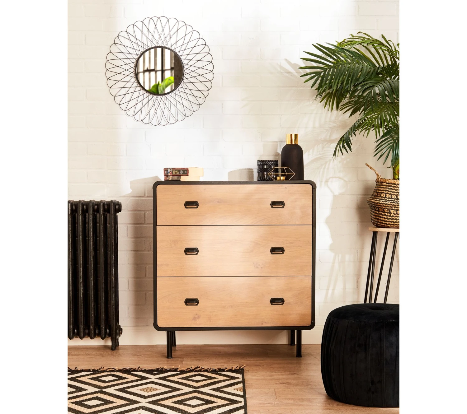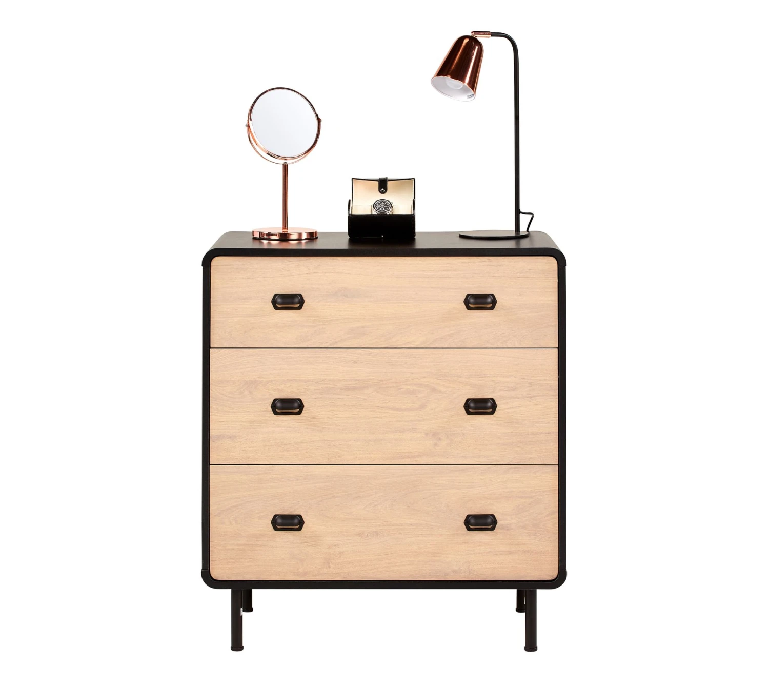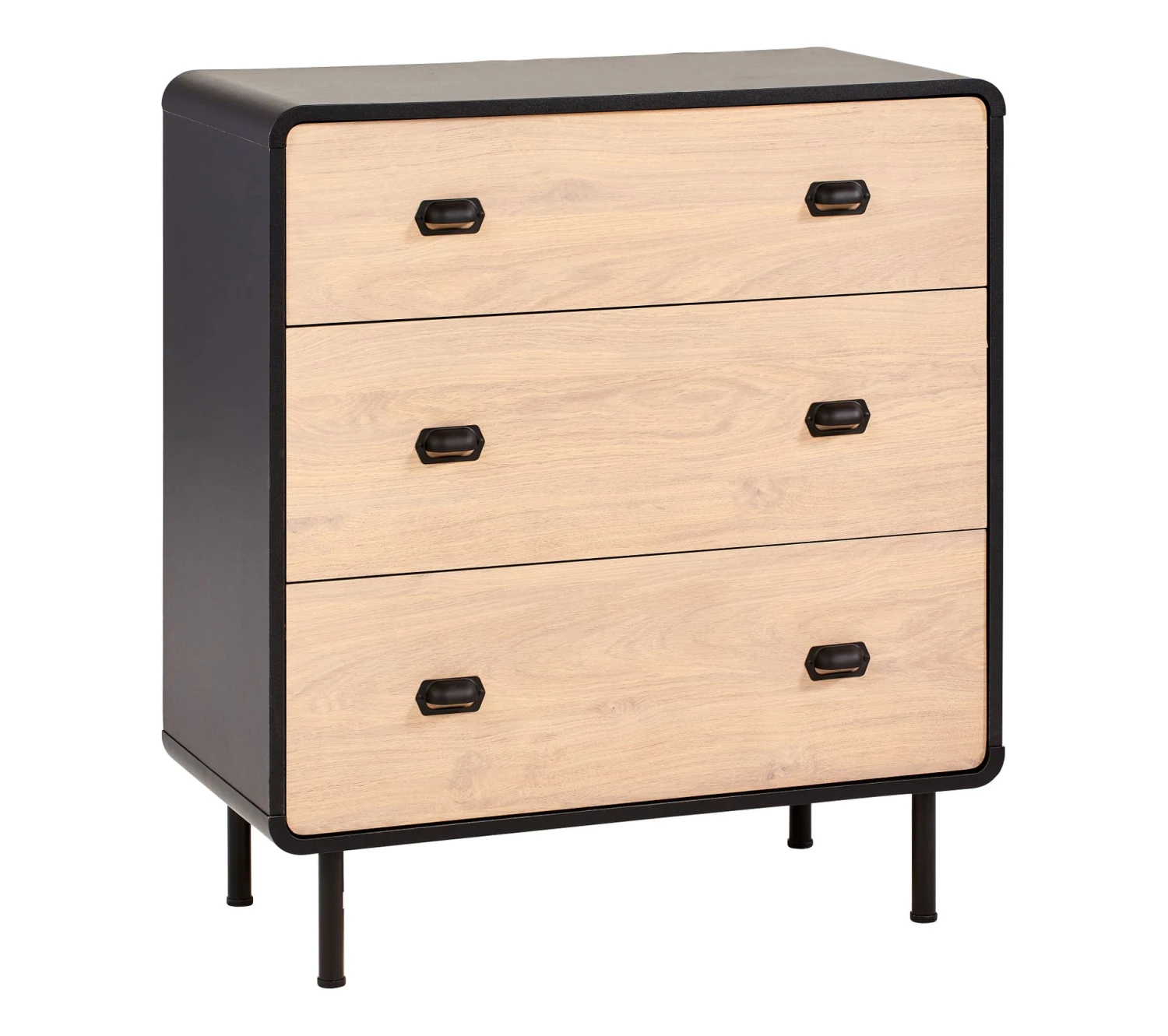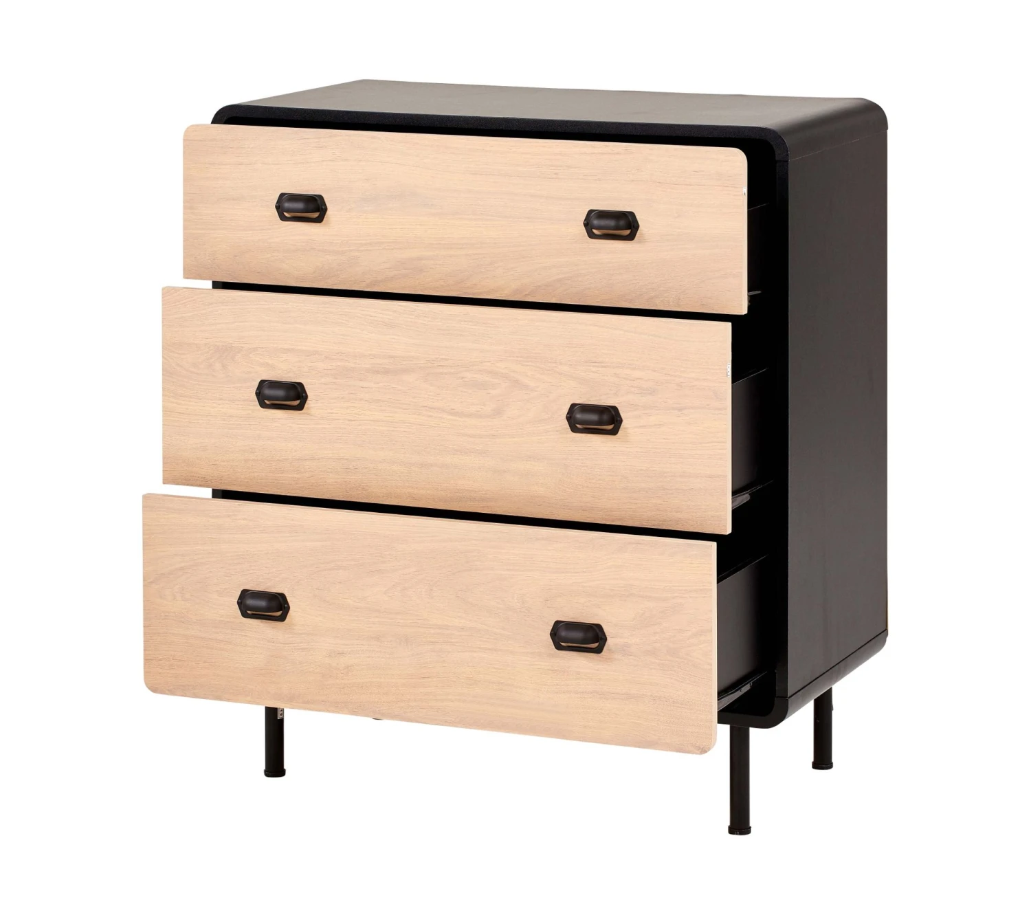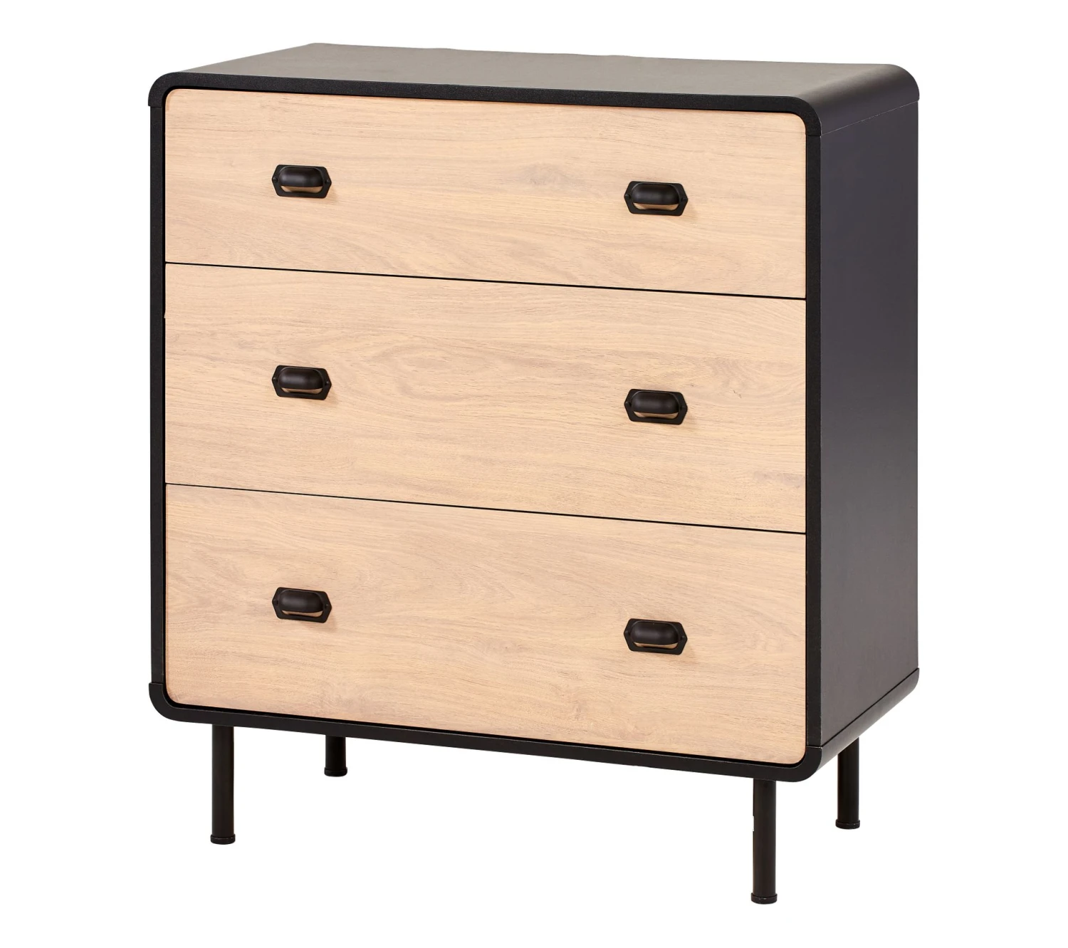 Bon marché 🥰 TIME Commode 3 tiroirs Sixties noir et imitation chêne 🔥