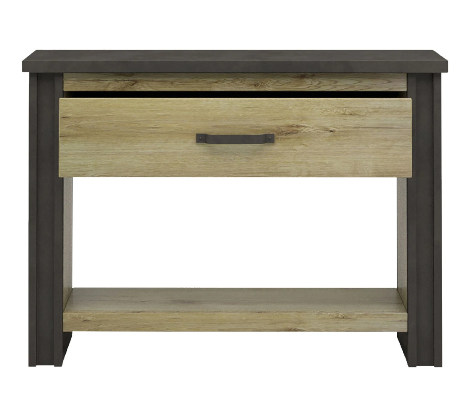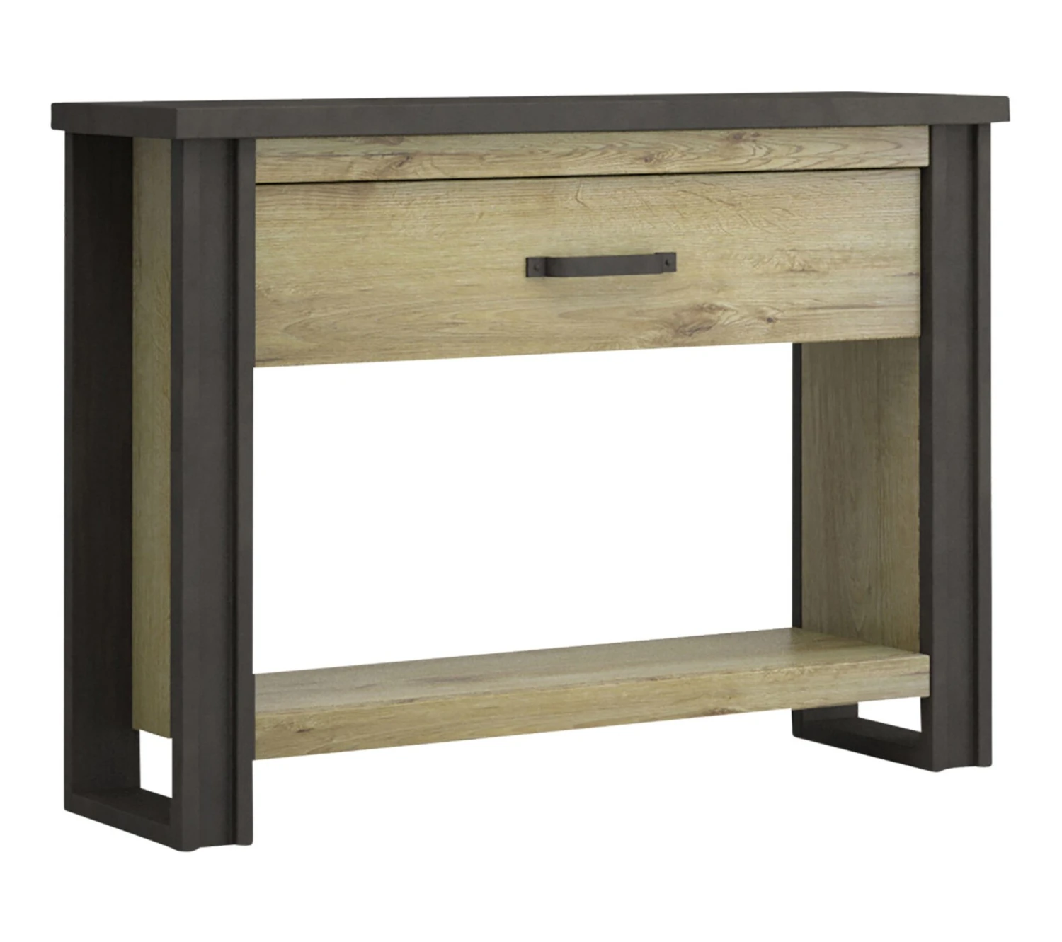 La console BAXTER a été fabriquée en France. Vous pouvez l?installer dans l?entrée ou l?utiliser comme meuble d?appoint dans le séjour, le bureau ou la chambre. Cette console de L.119 – H.89 – P.42 cm dispose d’un grand tiroir et d’un plateau inférieur où exposer quelques bibelots ou des objets qui vous tiennent à c?ur. Sa structure est en panneaux de particules. Livrée dans deux colis de 32 et 18 kg, cette console rectangulaire se distingue par sa facilité de montage. Un manuel d?instructions est fourni pour vous aider. Niveau entretien, il suffit de la dépoussiérer de temps en temps avec un chiffon doux.