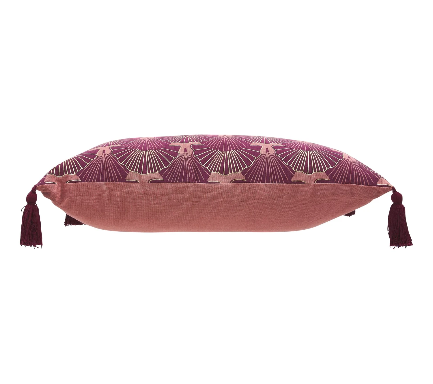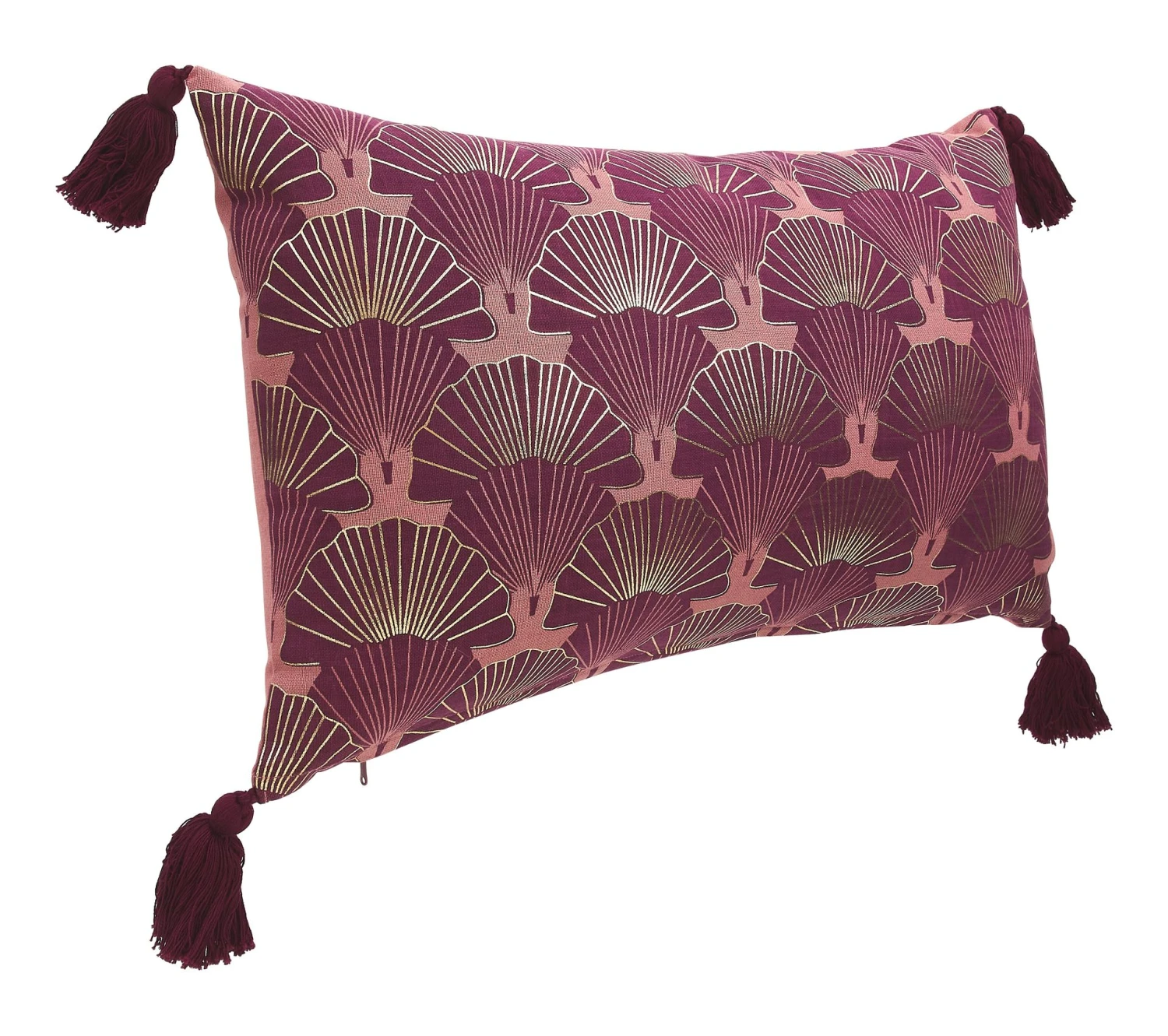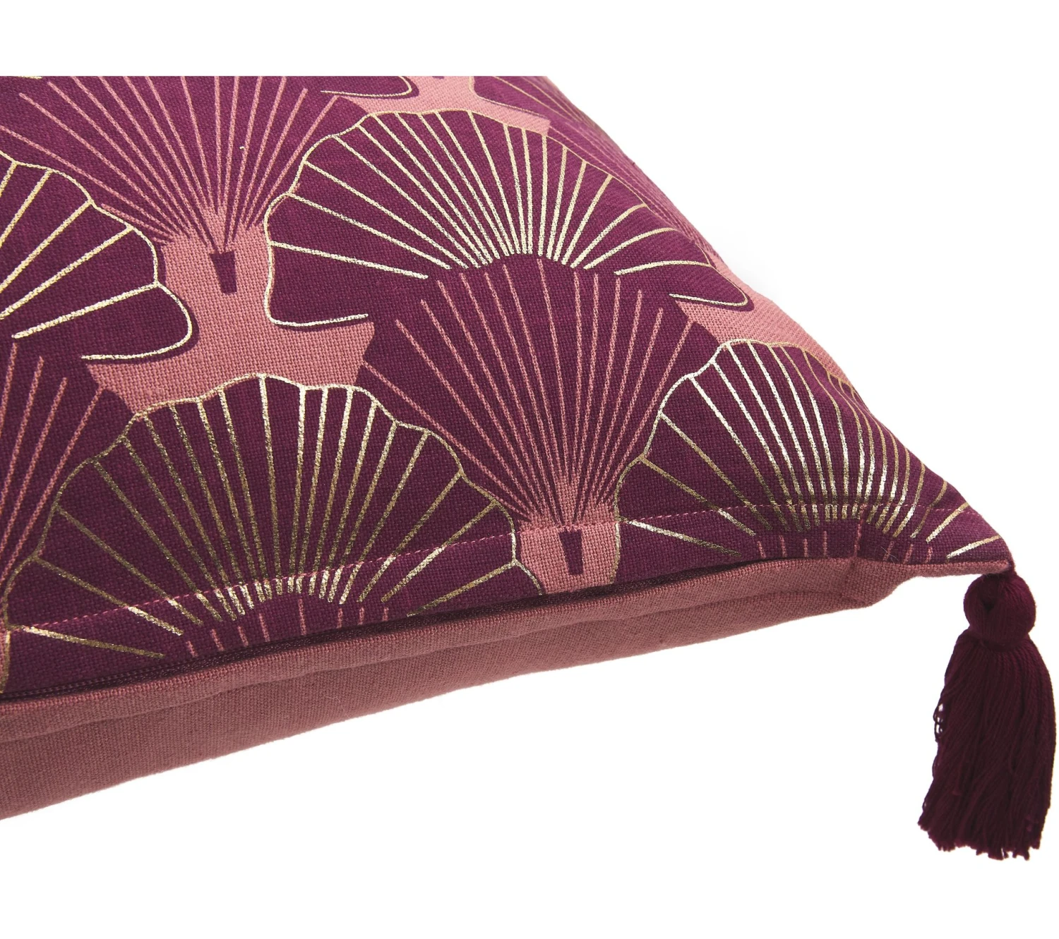Craquez pour l’élégance de ce coussin violet et or décoré d’éventails qui lui donnent ce côté art déco dans l’air du temps. Chaque coin est complété par un pompon en lainage qui lui apporte une touche d’élégance supplémentaire. Garni de mousse, ce coussin possède une housse 100 % coton à la fois résistante et douce.