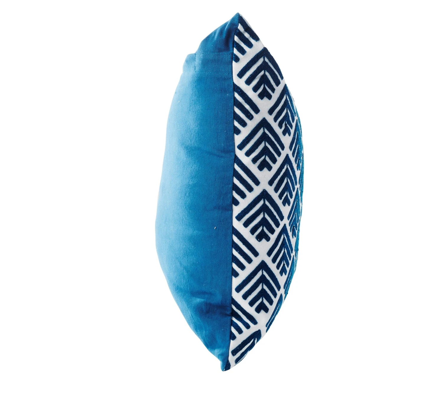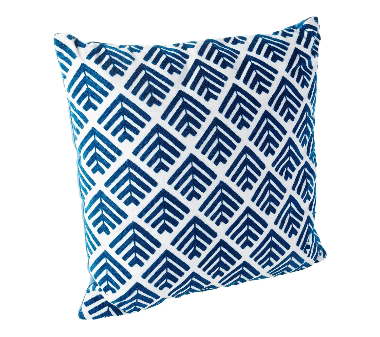 Décoré de motifs géométriques brodés, ce coussin apportera une petite touche graphique à votre décoration intérieure. Pour un rendu harmonieux, vous pouvez l’associer à d’autres modèles imprimés ou d’inspiration ethnique. Et si vous vous lassez de son motif, il suffit de le retourner pour profiter d’un coussin bleu uni.