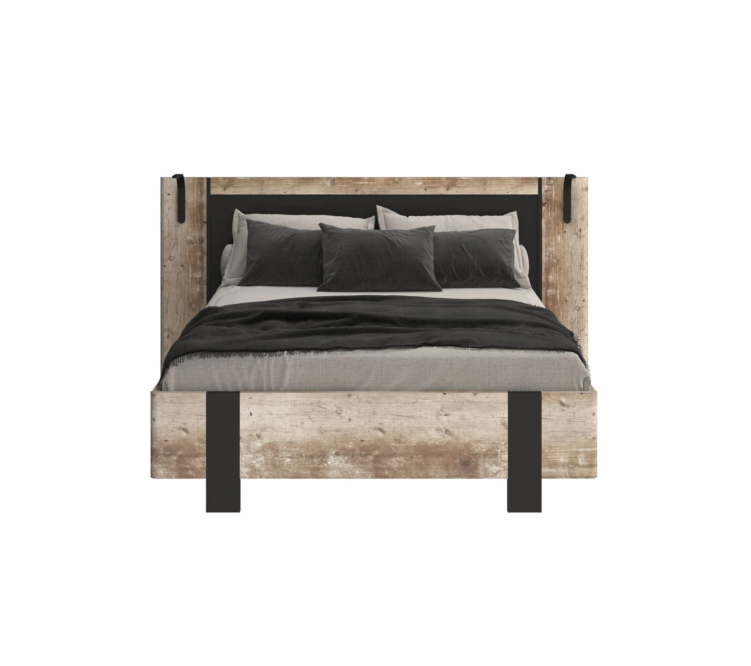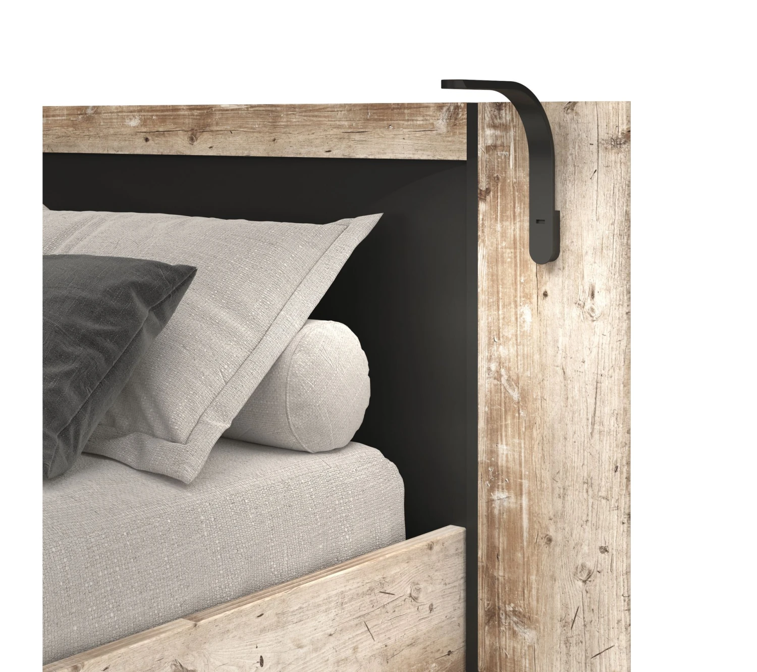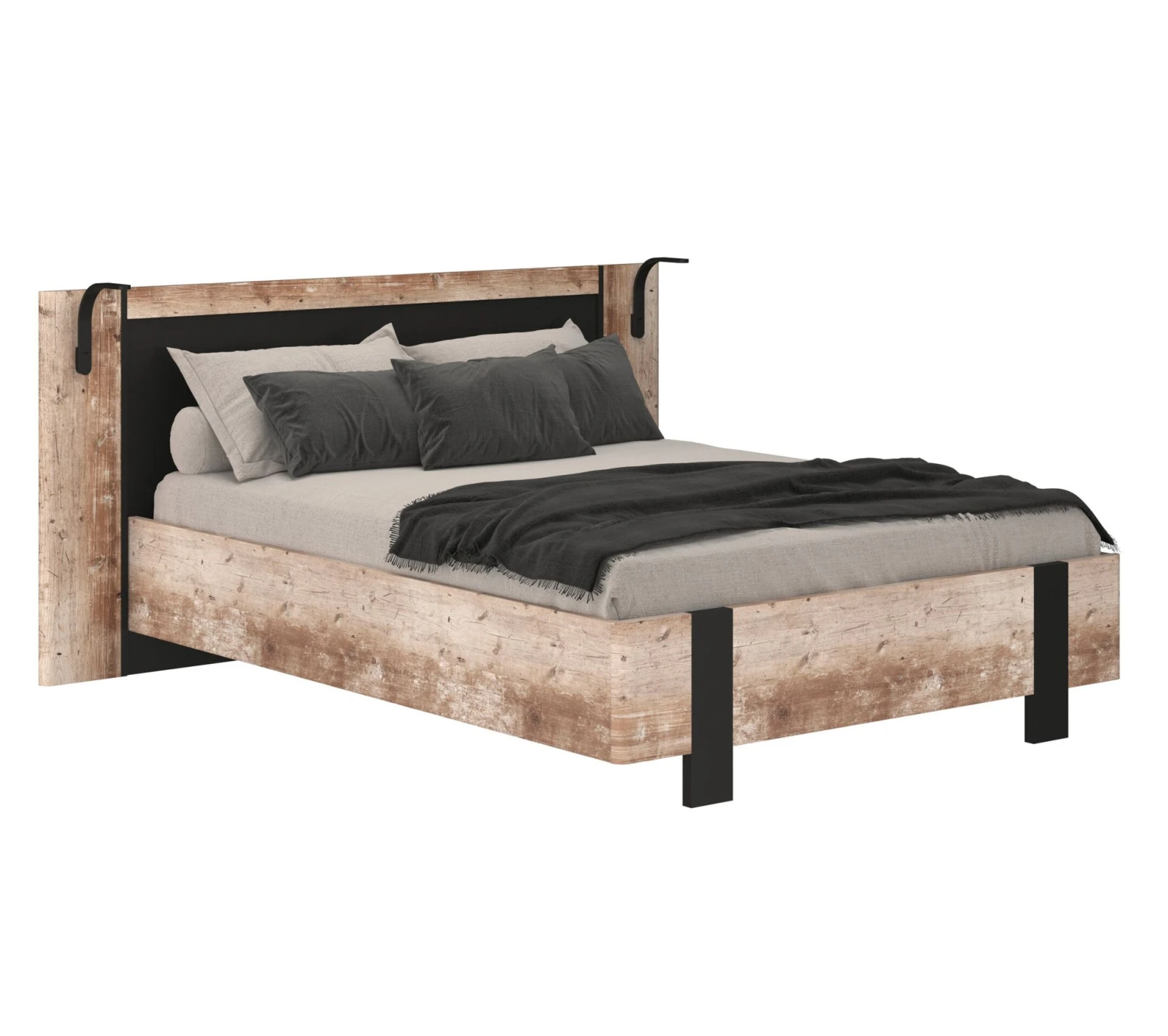 Un lit avec lampes intégréesLaissez-vous tenter par le lit DISTRICT pour meubler votre chambre. Reposant sur des pieds solides, il est agrémenté d’une tête de lit imposante. Celle-ci plaira assurément aux amateurs de lecture puisqu’elle possède un éclairage intégré. Il se compose de deux lampes équipées d’une LED et fixées de chaque côté de la tête de lit. Ce lit l. 194,7 x H. 95 x L. 192,6 cm est pensé pour accueillir un couchage classique pour deux personnes de 140 x 190 cm. Il est livré sans matelas ni sommier, ce qui vous offre la liberté de choisir les équipements les plus adaptés à vos besoins.Un design industrielCe lit imitation chêne et noir s’inscrit pleinement dans la tendance industrielle. Avec lui, vous ajoutez du cachet à votre chambre. Ce lit en panneaux de particules et panneaux de fibres de moyenne densité est orné de papier décoratif rappelant le bois. Pour un contraste élégant, complétez-le avec des coussins couleur crème.