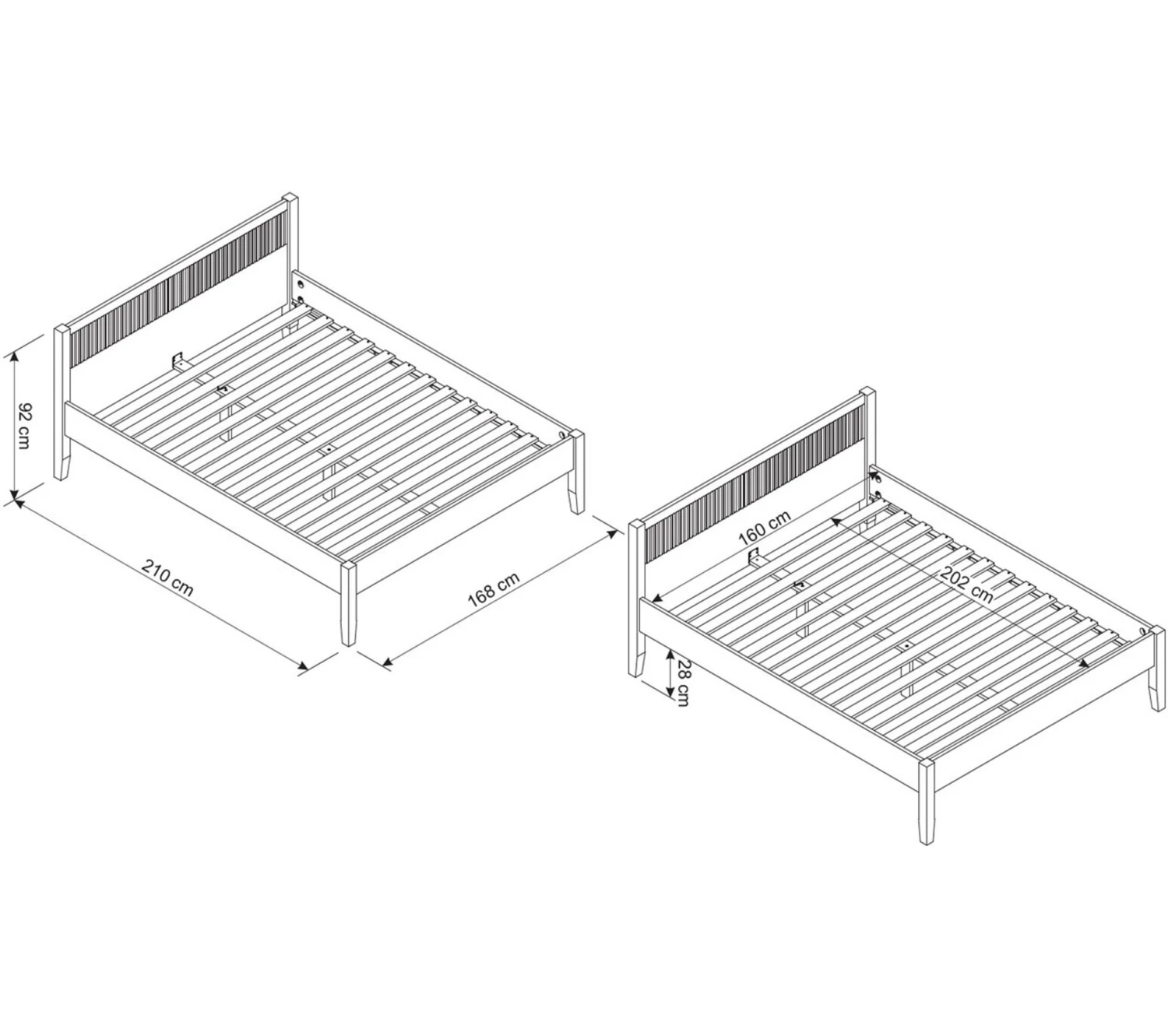 - Couchage en cm 160×200 cm (sans matelas, avec sommier).