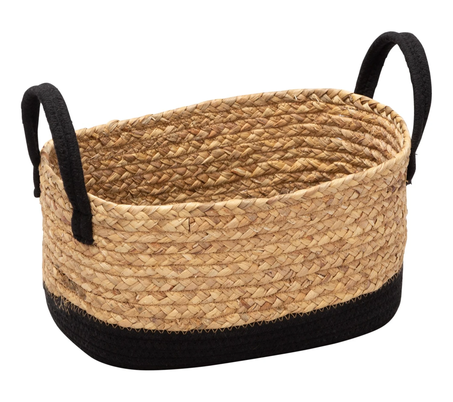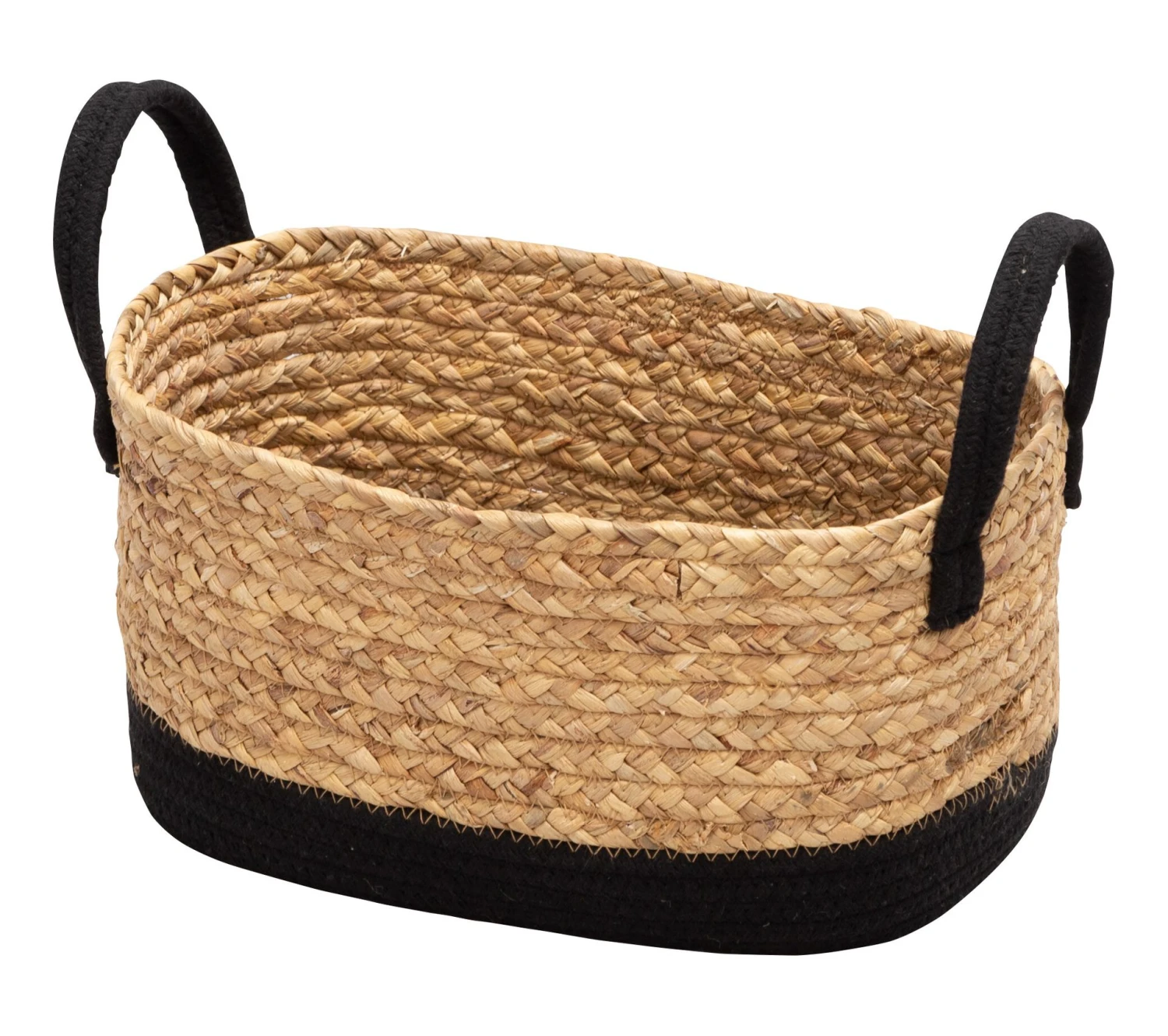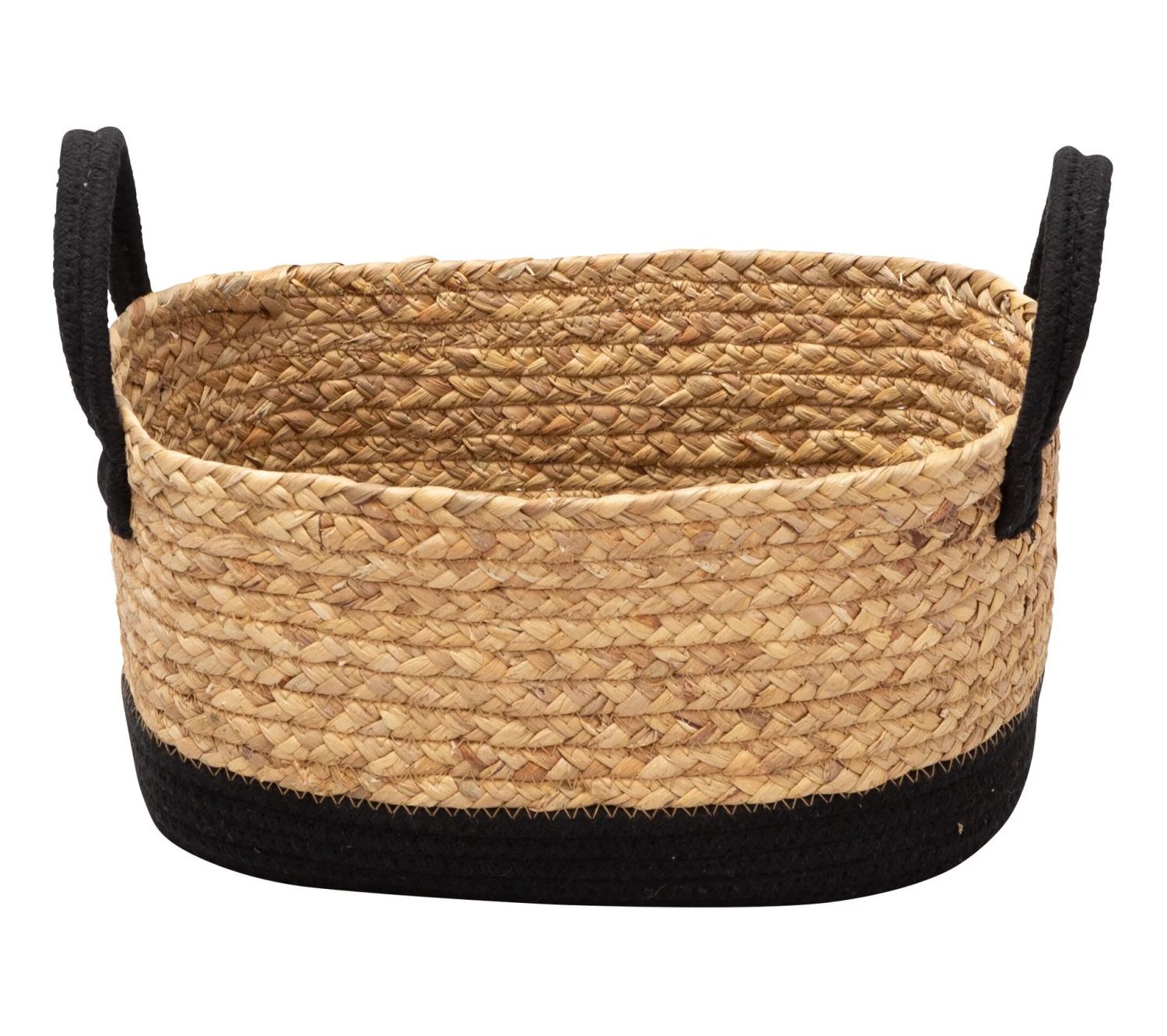 Laissez-vous séduire par l’élégance de ce grand panier naturel et noir. Bicolore et bimatière, il possède une structure tressée en jacinthe d’eau rehaussée par une bande de coton assortie aux poignées. Il trouve parfaitement sa place parmi des meubles en bois et une décoration végétalisée.