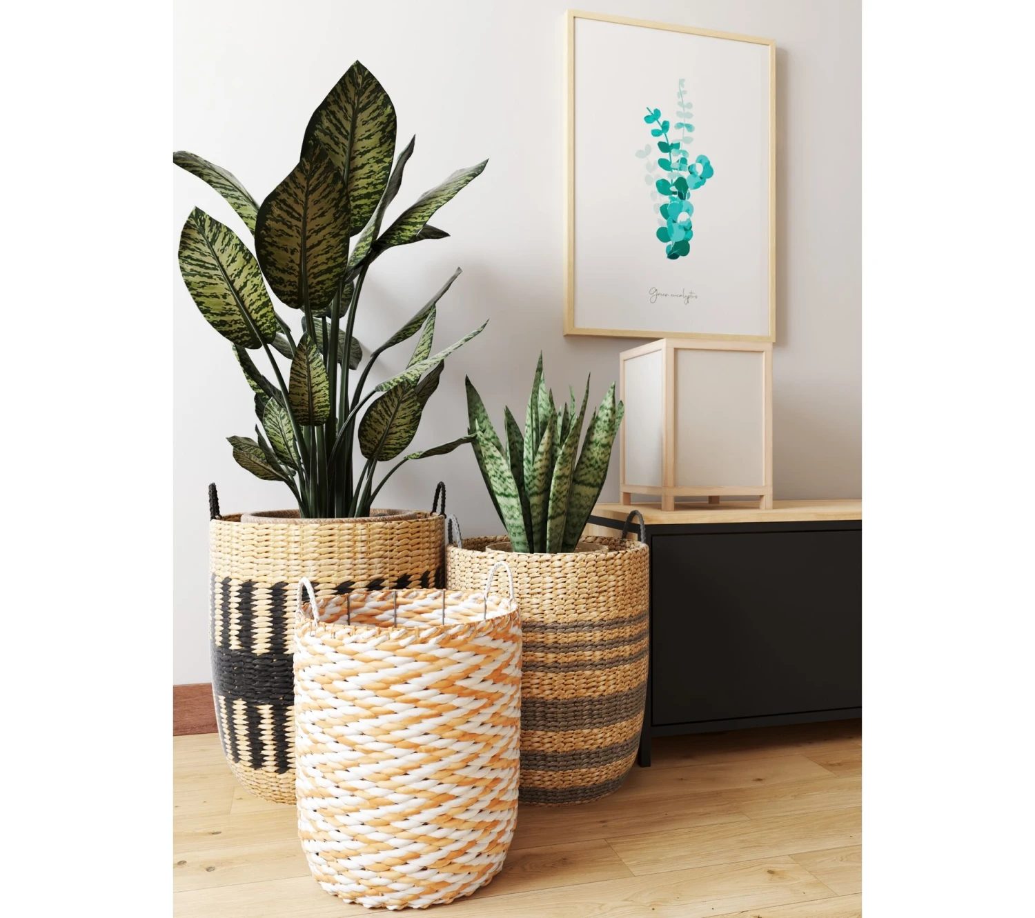 Promo 😉 TIME Panier set de 3 LENA noir/naturel 😉