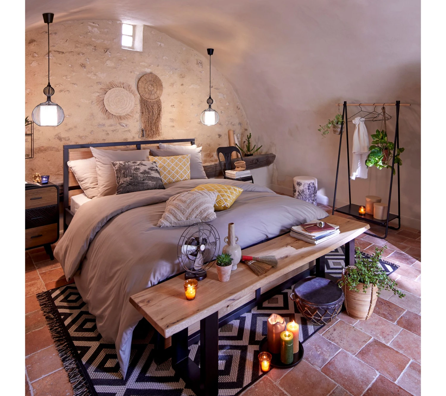 • Structure en métal noir et bois clair