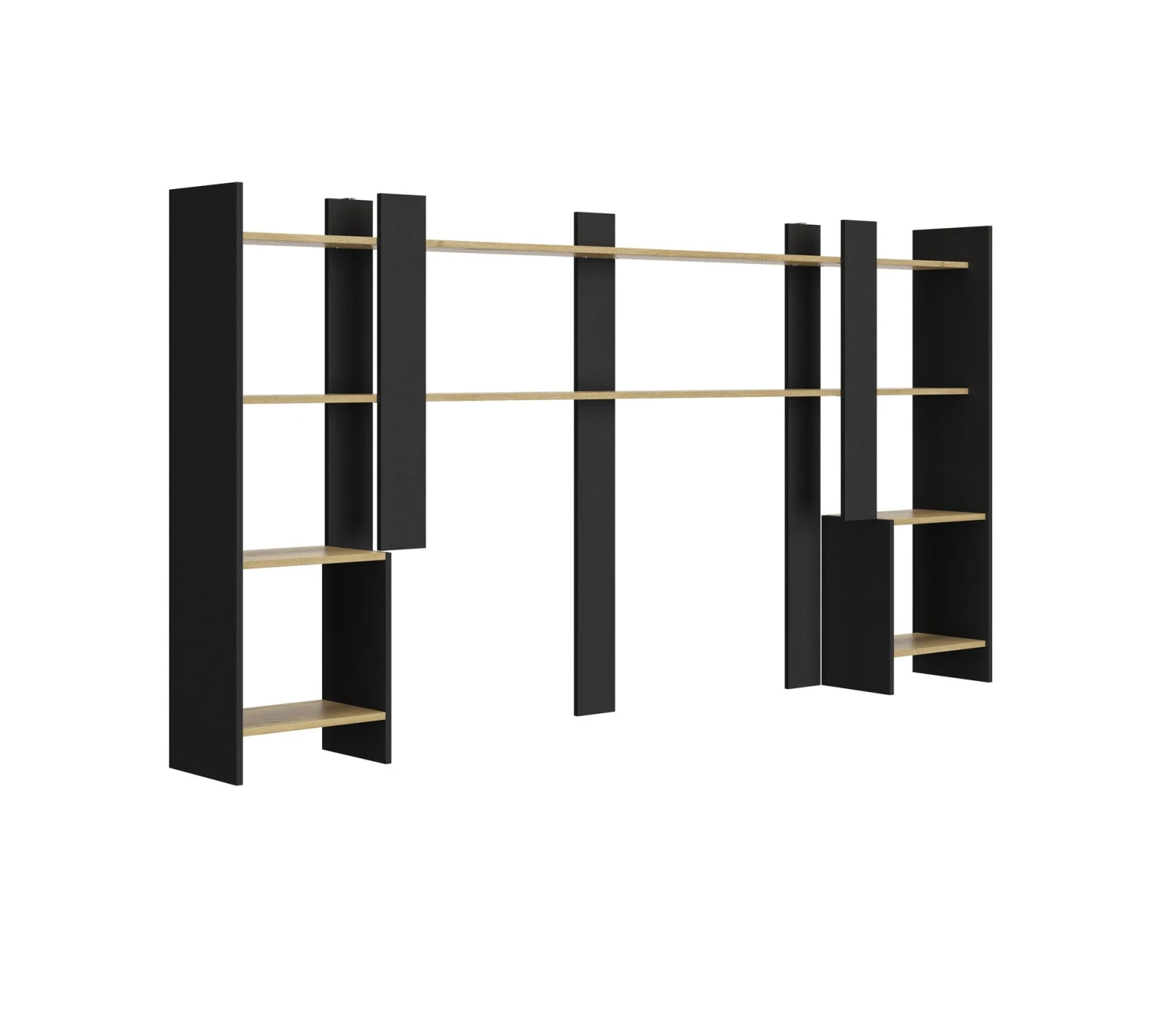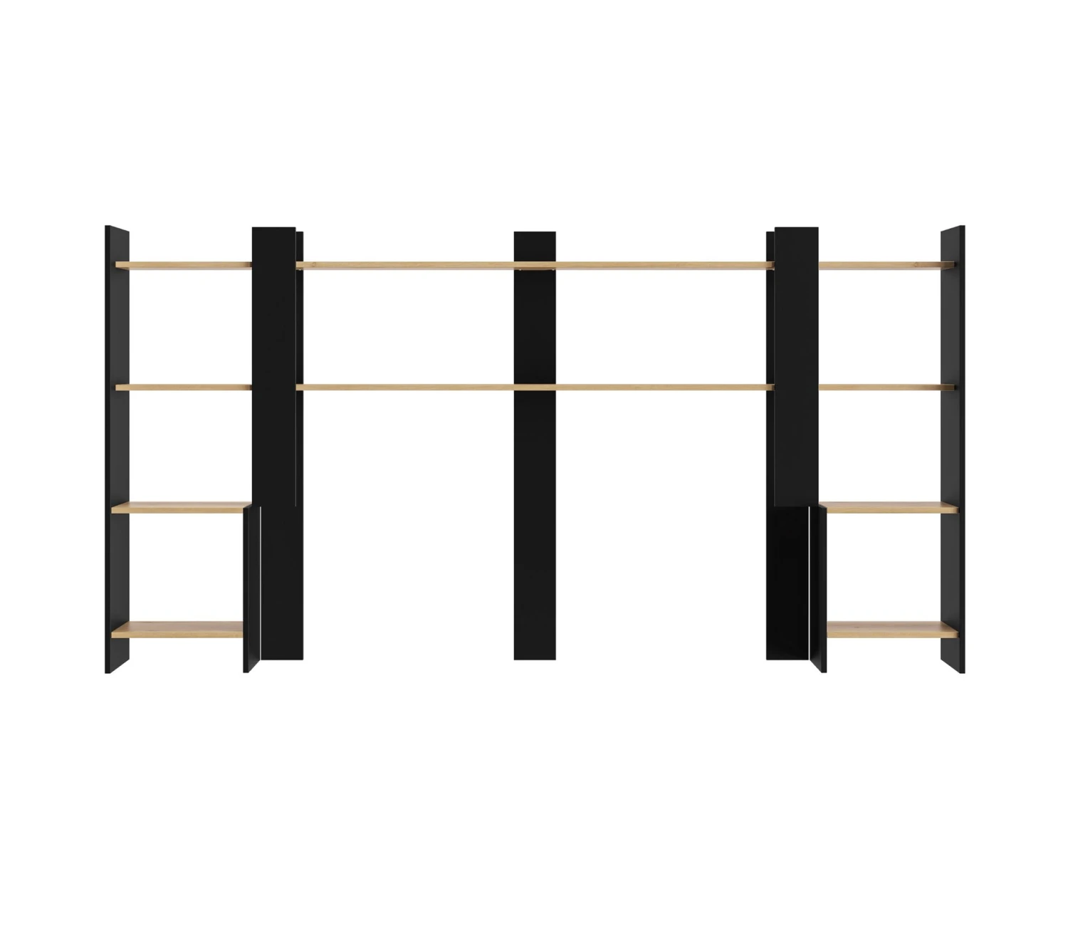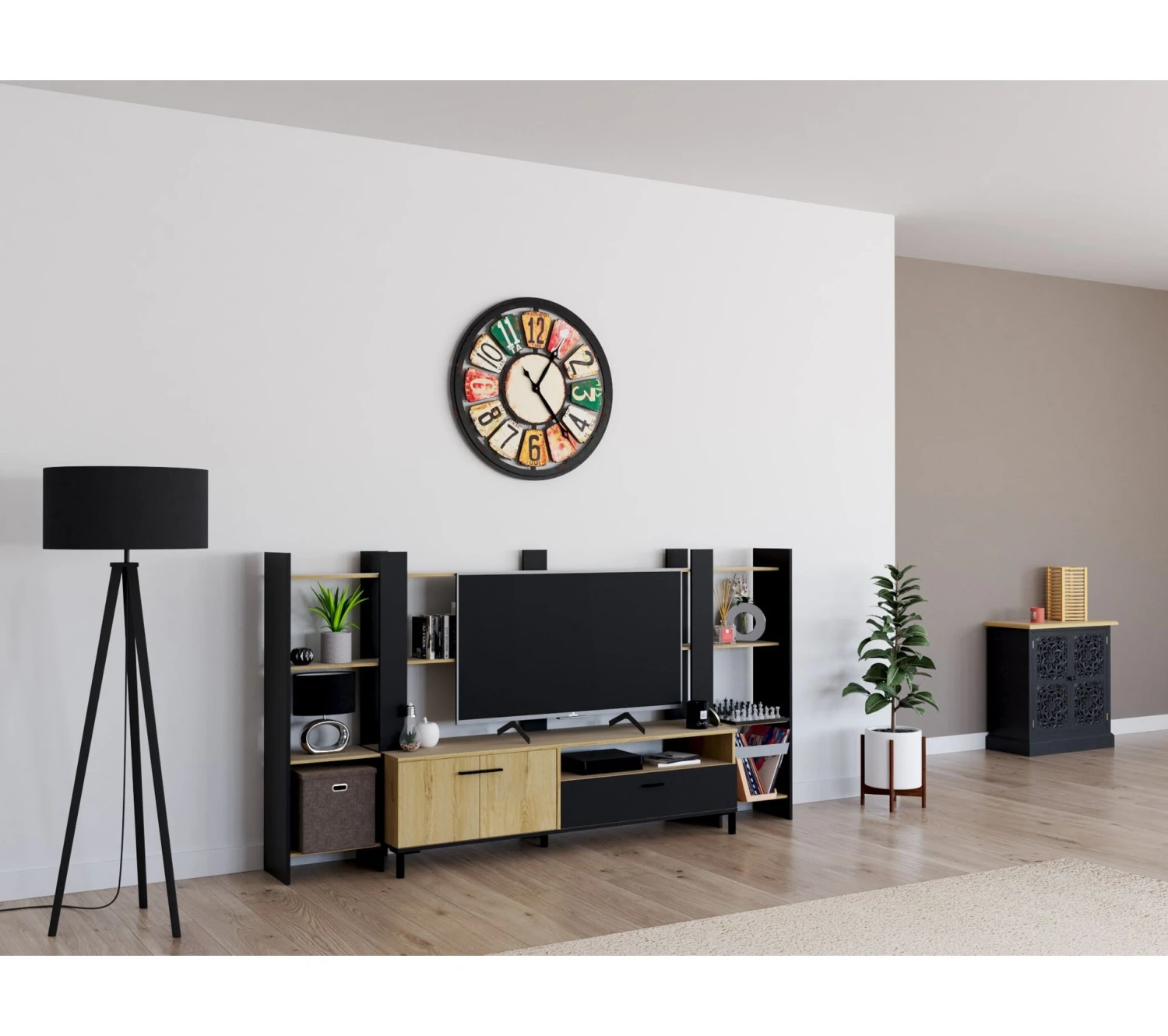 D’inspiration industrielle, ce surmeuble TV noir et boiscomplète un meuble TV bas de mêmes nuances. Son design parfaitement symétrique lui permet de s’associer harmonieusement tant à un décor graphique qu’à un cadre de style urbain. Ce surmeuble TVest l’idéal pour structurer le décor mural du salon.