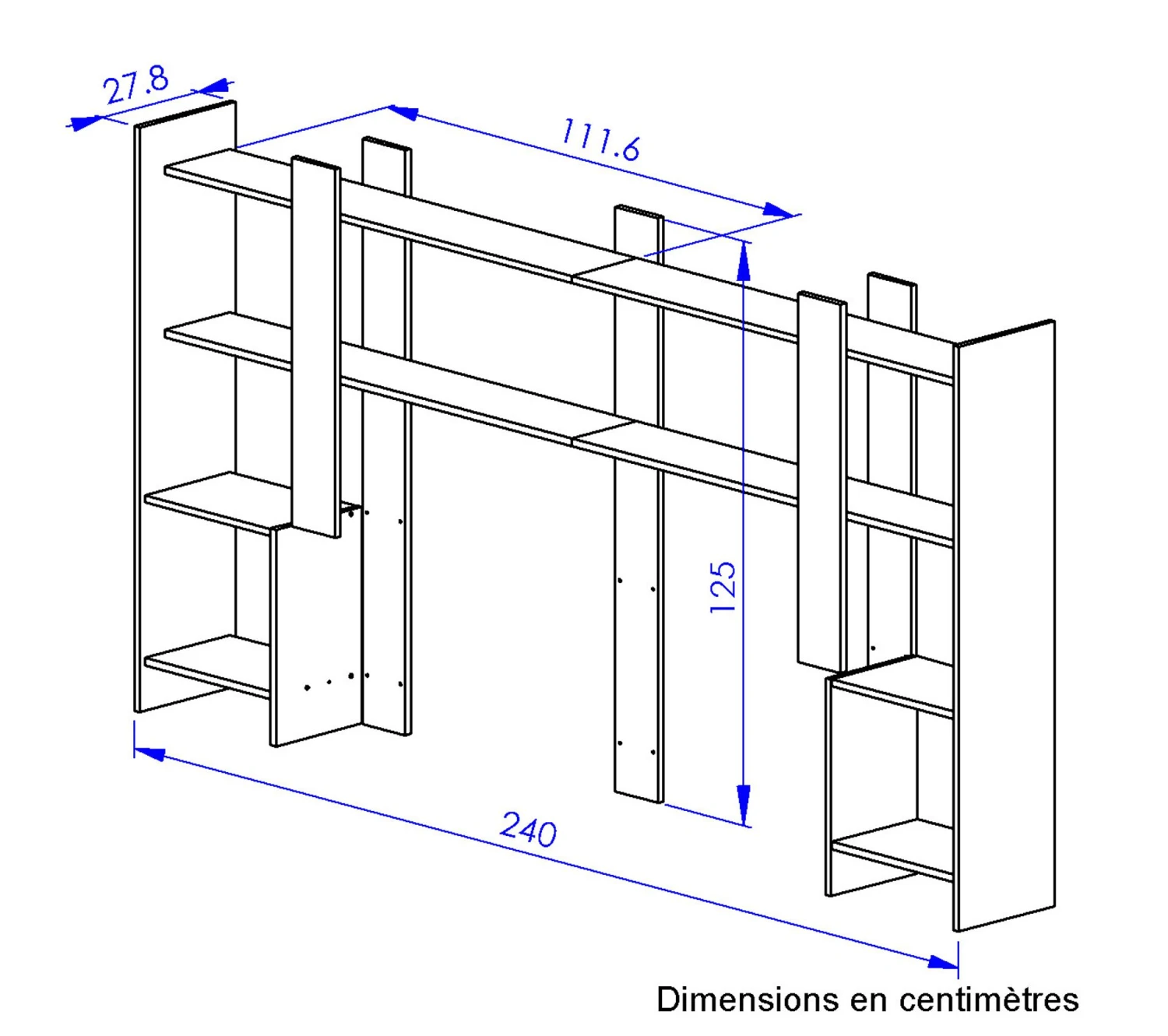 Livré avec un livret d’instructions étape par étape, ce surmeuble TV TRUSTest très facile à assembler. Ce surmeuble TV de dimensions L. 240 x H. 125 x P.28 cmse monte à la façon d’une étagère, en fixant les rayonnages sur la structure. La visserie nécessaire est fournie avec le meuble.
