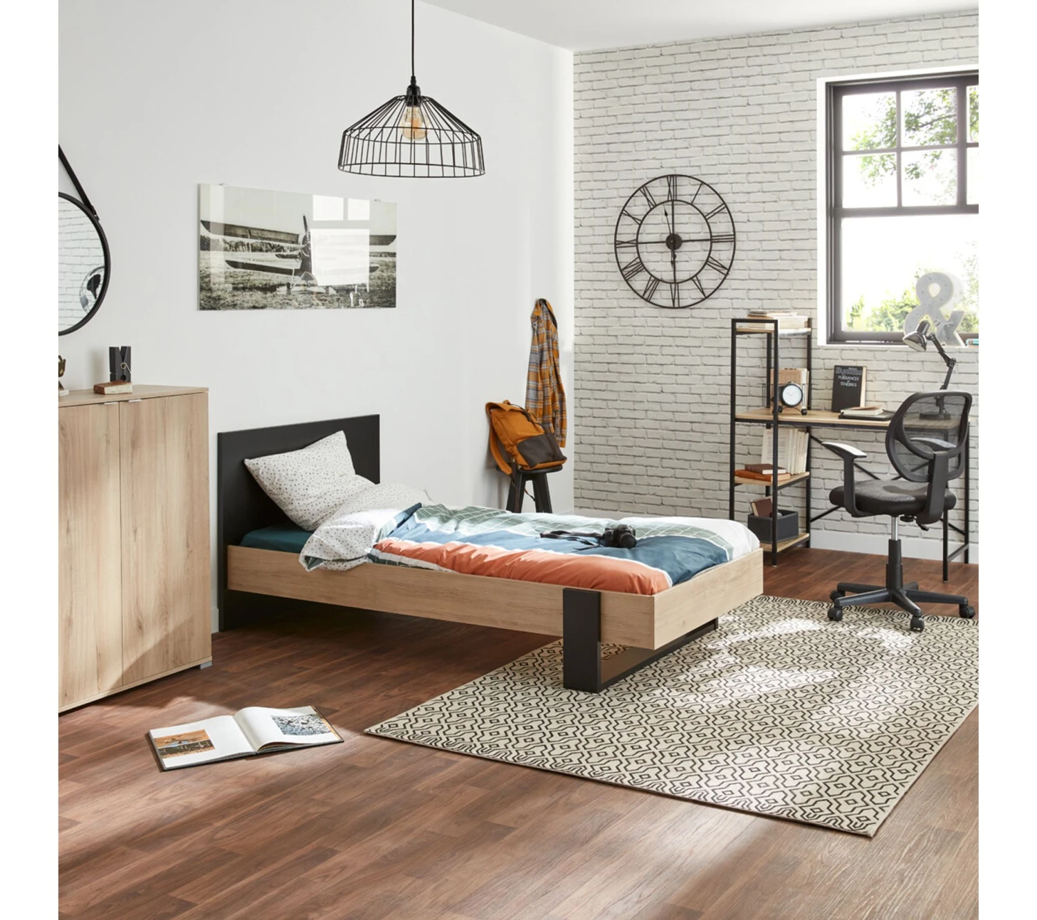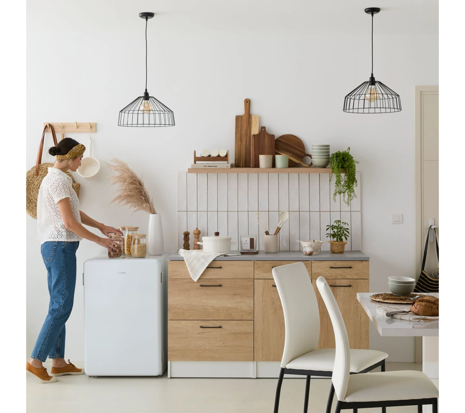 Cette suspension noire est un accessoire aussi facile à poser qu’élégant. Il suffit de fixer le support au plafonnier et d’ajuster la longueur du fil en fonction de la hauteur de la pièce et de vos goûts. La structure de ce luminaire est composée de fils de fer teints en noir mat qui laissent voir l’ampoule. Cette suspension de 38 cm de diamètre et de 19,5 cm de hauteur s’installera aisément dans le lieu de votre choix. Elle est compatible avec toutes les ampoules de type E27 et d’une puissance maximale de 15 watts CFL.