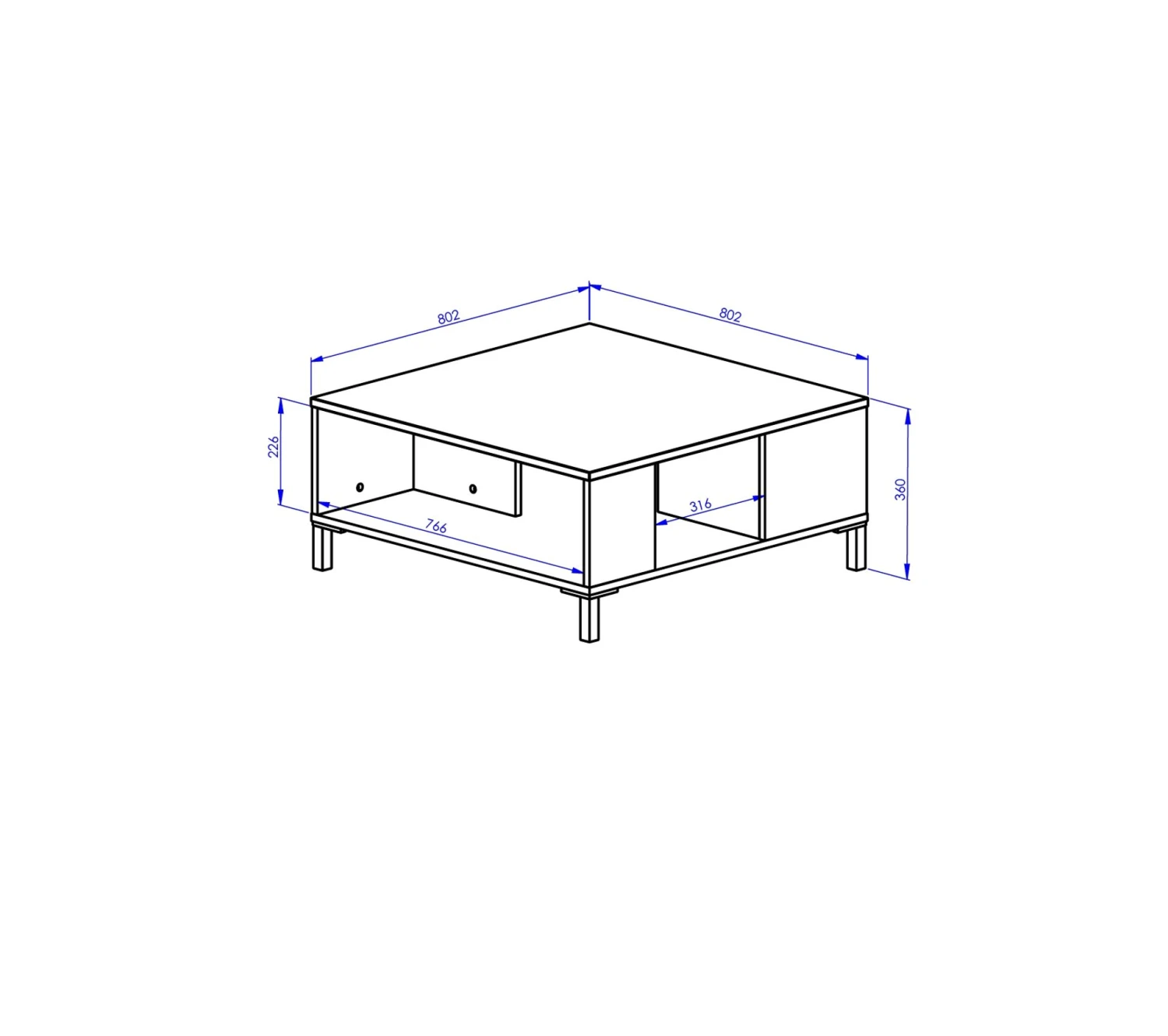• Forme carrée avec rangement.