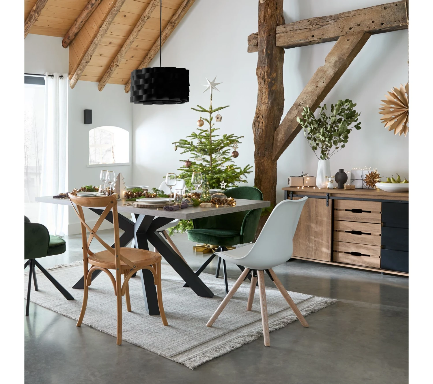 Vous allez adorer l’allure contemporaine de cette table imitation chêne et grise. Grâce à son piètement en métal noir à la forme originale, elle deviendra la star de votre salle à manger. Cette tablepeut être intégrée à une décoration de style moderne ou industrielle. Elle peut être assortie aux autres meubles et aux chaises de la collection BAXTER.