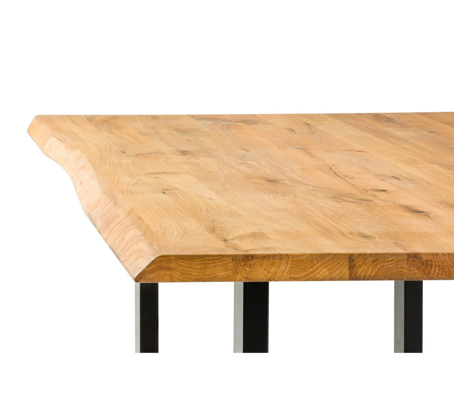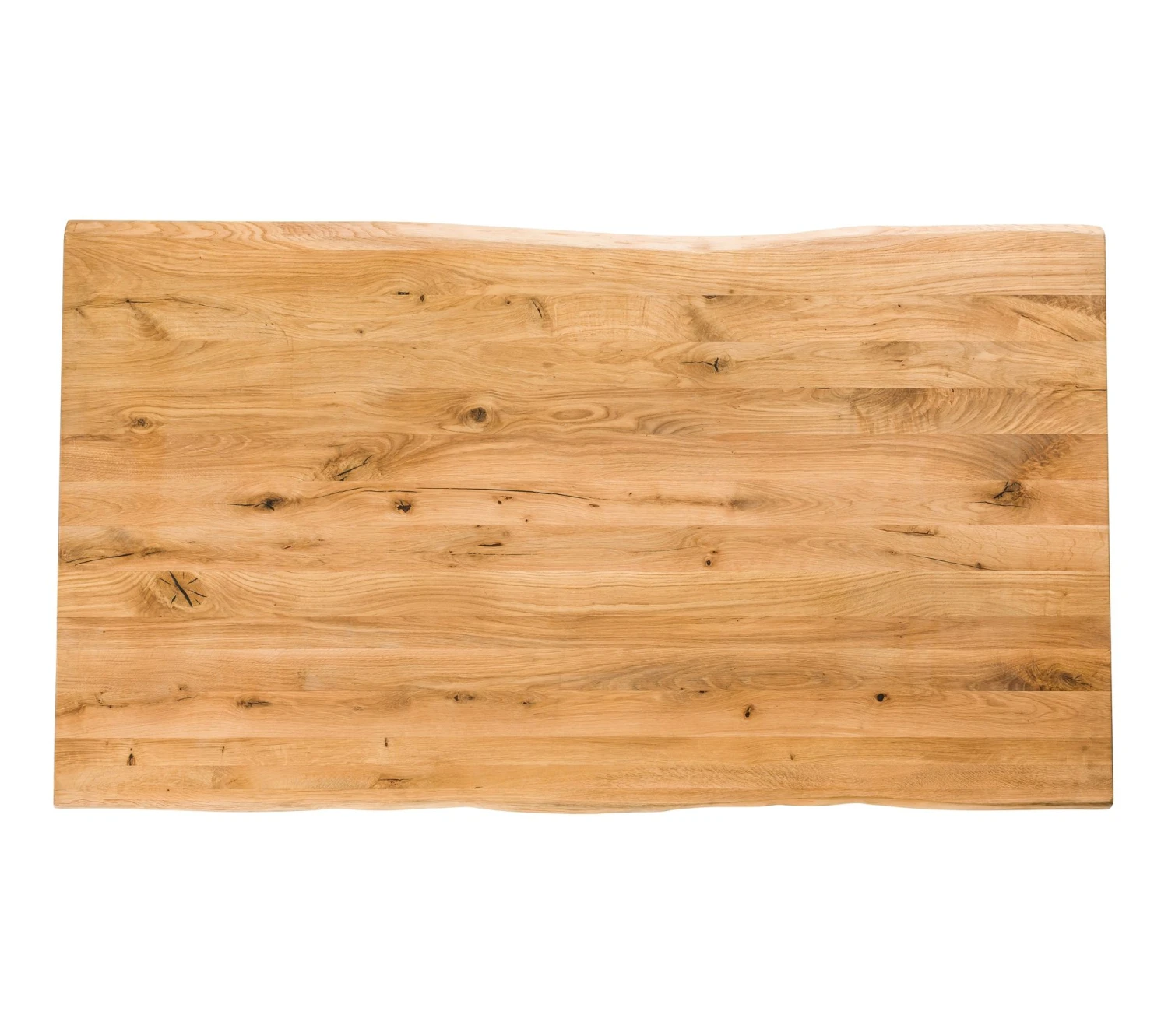 - Plateau chêne massif huilé, bord irrégulier, ép. 40 mm.