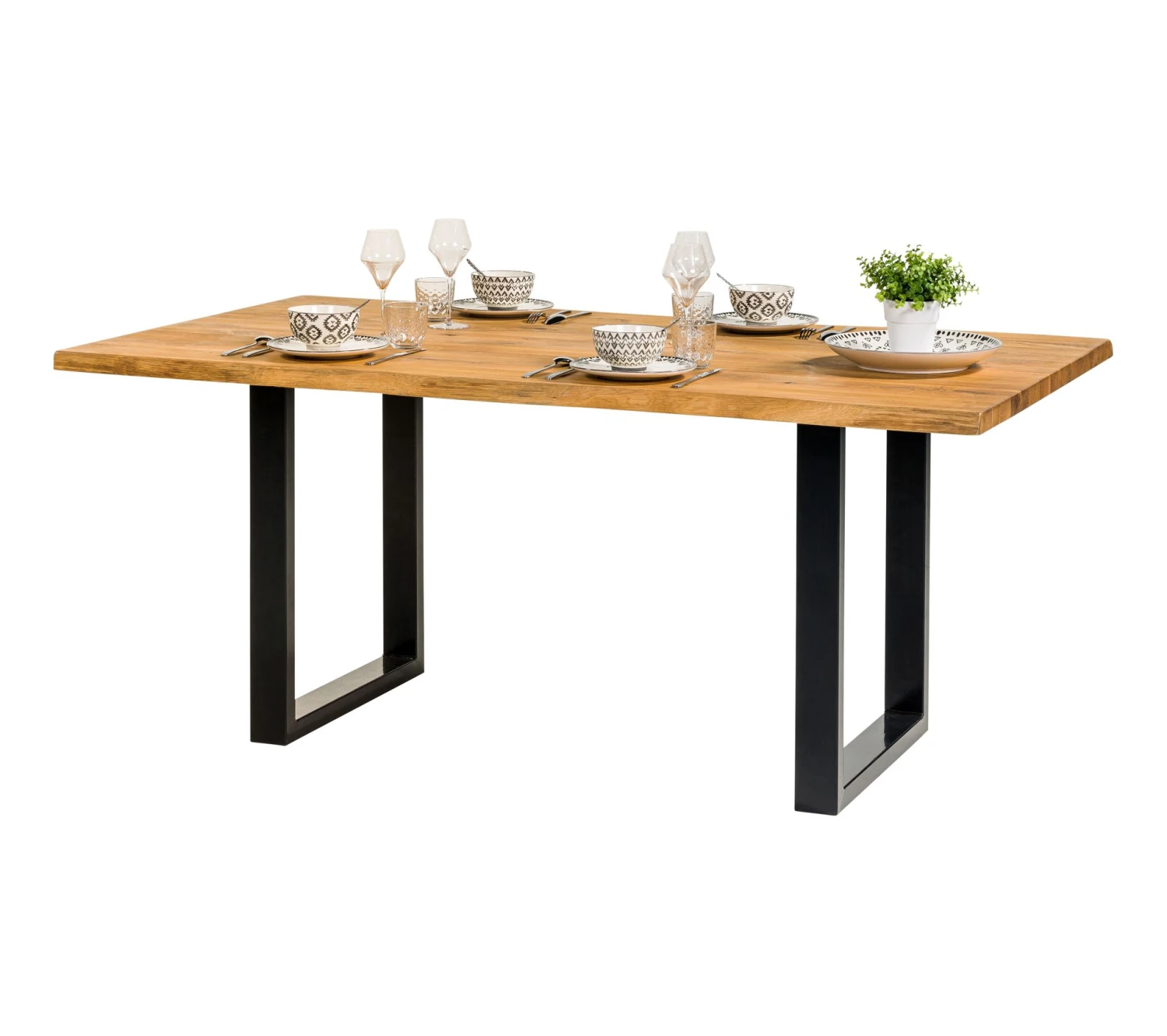 Fabriqué en chêne massif, le plateau de cette table rectangulaire ne ressemble à aucun autre : en témoignent ses bords irréguliers et son veinage aux dessins variés. Associant le bois et l’acier, cette table EMMA trouve sa place dans un décor de style industriel, auquel elle offre une touche unique.